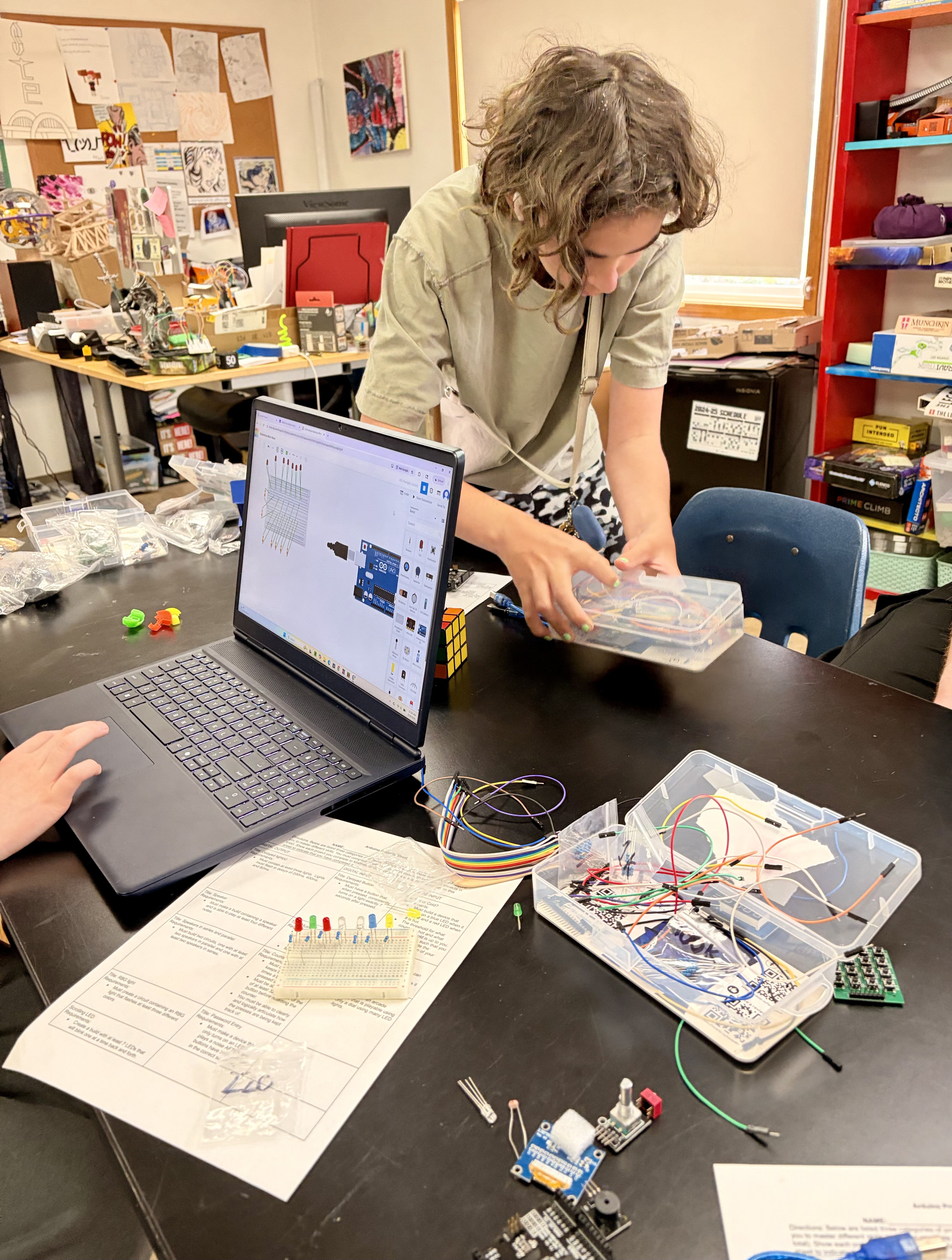 Middle School Explorations is a rotating, low-stakes block to engage curiosity and creativity. This time develops students’ confidence, initiative, and social skills in a relaxed and creative environment. Students may shift focus each semester as they explore emerging interests, and our staffulty remain flexible to offer new opportunities for students who aren’t able to engage elsewhere. This year, a science teacher offered an independent study time with a student, and together they designed this nuclear decay simulator.